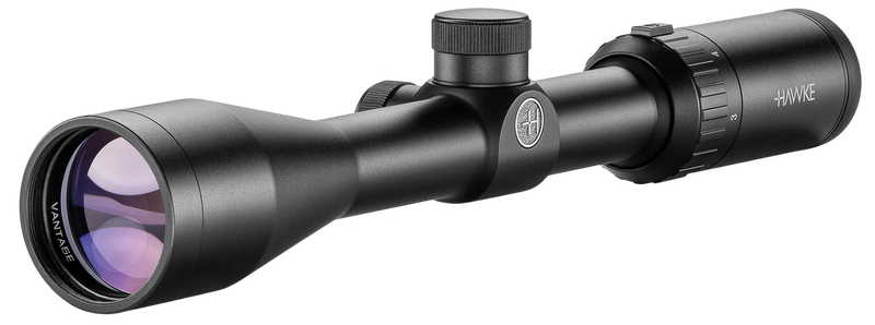 The Hawke Vantage is a 3-9x40mm riflescope with a 1-inch tube and fixed parallax adjustment. It features a mil-dot reticle, fully multi-coated optics for brightness and clarity, and 3.5 inches of eye relief. Weighing 14.20 oz with a field of view of 39-12.7 feet at 100 yards, this scope is suitable for general hunting and sport shooting applications.