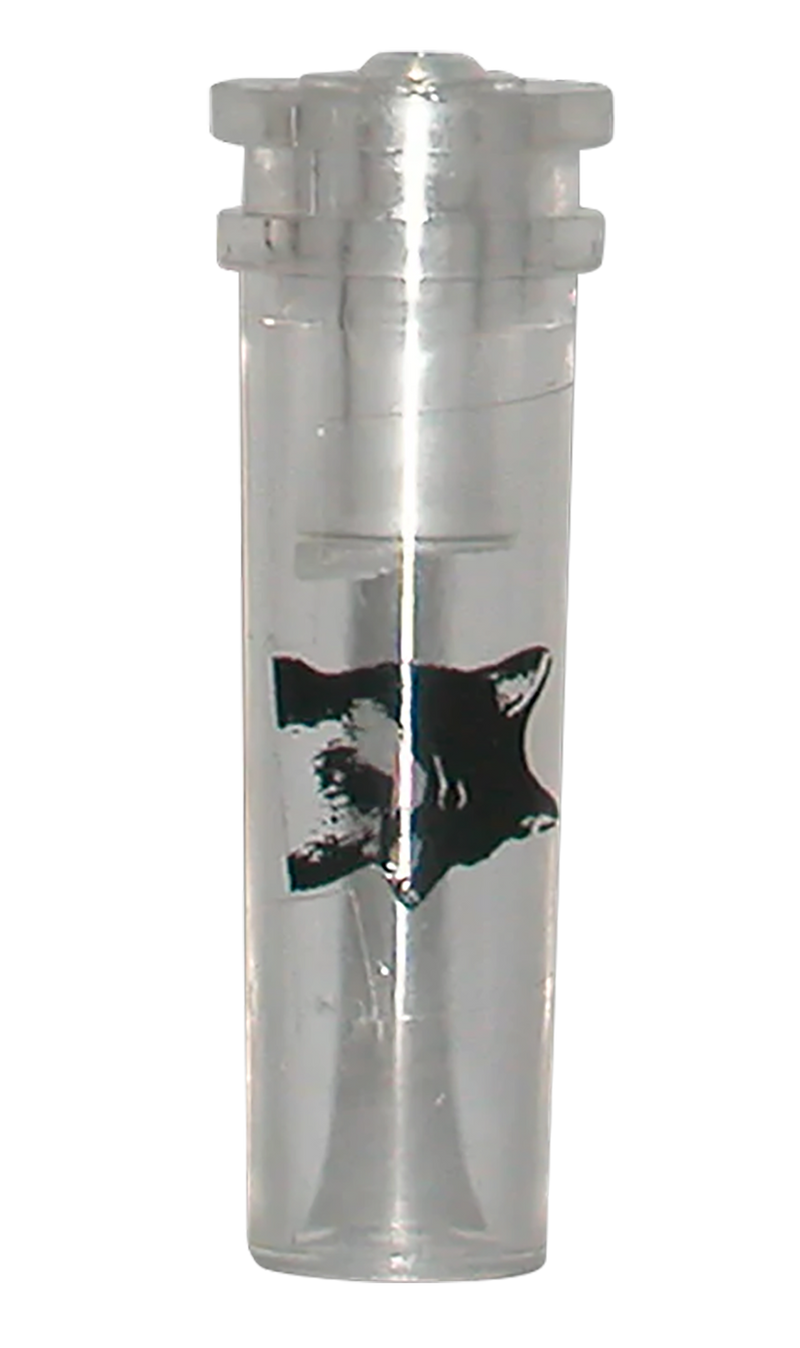 This open call predator call produces mouse and rodent squeaking sounds to attract predators such as coyotes, foxes, and other hunting targets. Constructed from clear acrylic material with dimensions of 5.4" L x 4.3" W x 0.2" H, it is a non-electronic call suitable for predator hunting applications.