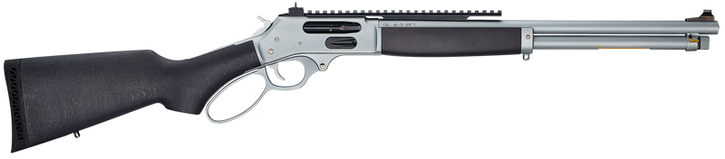 The Henry H010 Side Gate All Weather is a lever-action rifle chambered in .45-70 Government with an 18.43" hard chrome plated steel barrel and 4+1 round capacity. Features a satin hard chrome steel receiver, stained hardwood stock, and a side loading gate for convenient reloading. Built with an extended picatinny scout rail for optics mounting and weighs 7.08 lbs.