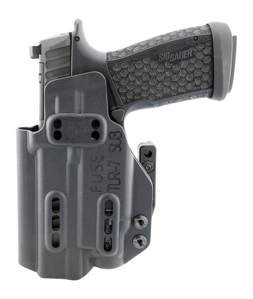 Inside-the-waistband concealed carry holster designed for the Sig Sauer P365-XMacro with Streamlight TLR-7 Sub weapon light (1913 rail edition). Features ambidextrous draw, adjustable design for all-day comfort, and discreet concealment for everyday carry. Precision-crafted for seamless integration into daily routines.