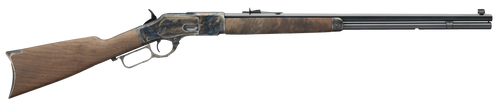 Lever-action rifle chambered in .44-40 Winchester with a 24.5" octagon blued barrel and color case hardened steel receiver. Features fancy American walnut stock, blade front and folding ladder rear sights, and 13+1 capacity. Weighs 9 lbs with an overall length of 43" and 1:36 rate of twist.