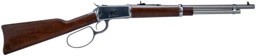 The Heritage 92 Ranch Hand is a lever-action rifle chambered in .44 Magnum with a 16.5" black polished steel barrel and 8-round capacity. It features a black polished alloy steel receiver paired with a fixed hardwood stock, adjustable buckhorn rear sight, and drift-adjustable front sight. Weighing 5.87 lbs with an overall length of 33.2", it delivers classic western styling suitable for ranch use, hunting, and collectors.