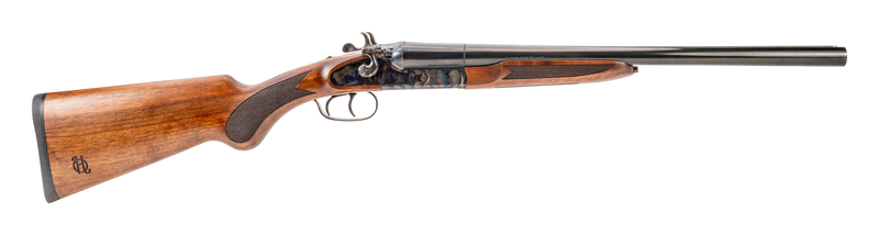 The Heritage Coachwhip is a 20 Gauge break-action side-by-side shotgun with an 18.5" barrel and 2-round capacity. It features a color case hardened alloy steel receiver, Turkish walnut stock, double triggers, exposed hammers, and fixed cylinder bore chokes. This firearm weighs 6.72 lbs and has an overall length of 35.43".
