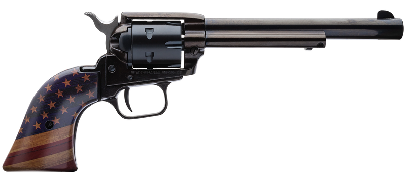 Heritage Rough Rider .22 LR 6.5" 6rd Revolver, Black Oxide with Gold USA Flag Grips - RR22B6GOLDUSA