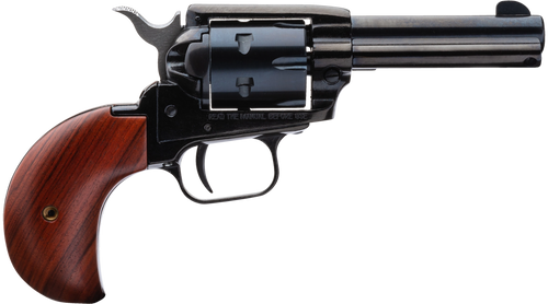 Single-action revolver chambered in .22 LR and .22 WMR with a 6.5" blued steel barrel and 6-round capacity. Features a blued alloy frame, fixed front sight with notched rear sight, cocobolo grips, and exposed hammer. Weighs 33.4 oz with an overall length of 11.78".