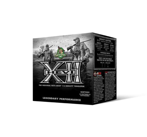 HEVI-Shot Hevi-XII ammunition is loaded in 20 gauge, 3" shells with 1.25 ounces of #6 tungsten shot. This non-toxic, tungsten-based load is designed for waterfowl hunting and delivers superior density and velocity compared to lead shot. State restrictions apply in California.