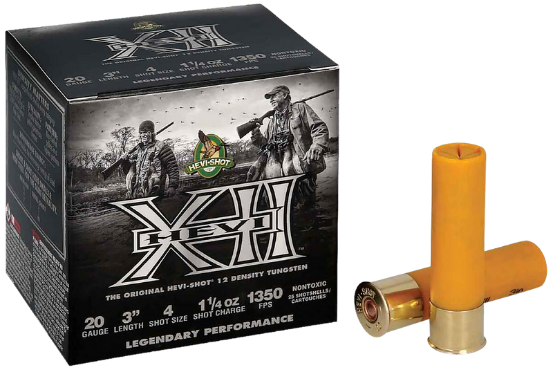 HEVI-Shot HEVI-XII shotshells feature tungsten pellets that are 53.8% denser than steel, delivering superior downrange energy for waterfowl and upland game hunting. Loaded to 1350 fps with #2 shot in a 20 gauge 3" plastic case, these rounds provide increased lethality at extended distances.
