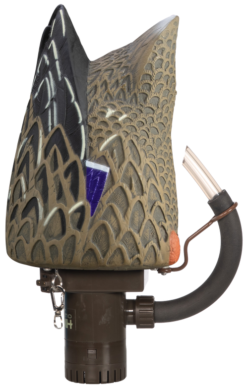 This foam-filled mallard drake decoy features motorized pulsator motion that mimics realistic rocking and feeding behavior to attract waterfowl. It includes a built-in timer, provides up to 7 hours of runtime, and is lightweight and portable for field use. The decoy is the official decoy of Ducks Unlimited and designed with realistic details for finishing birds.