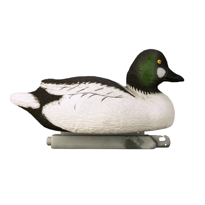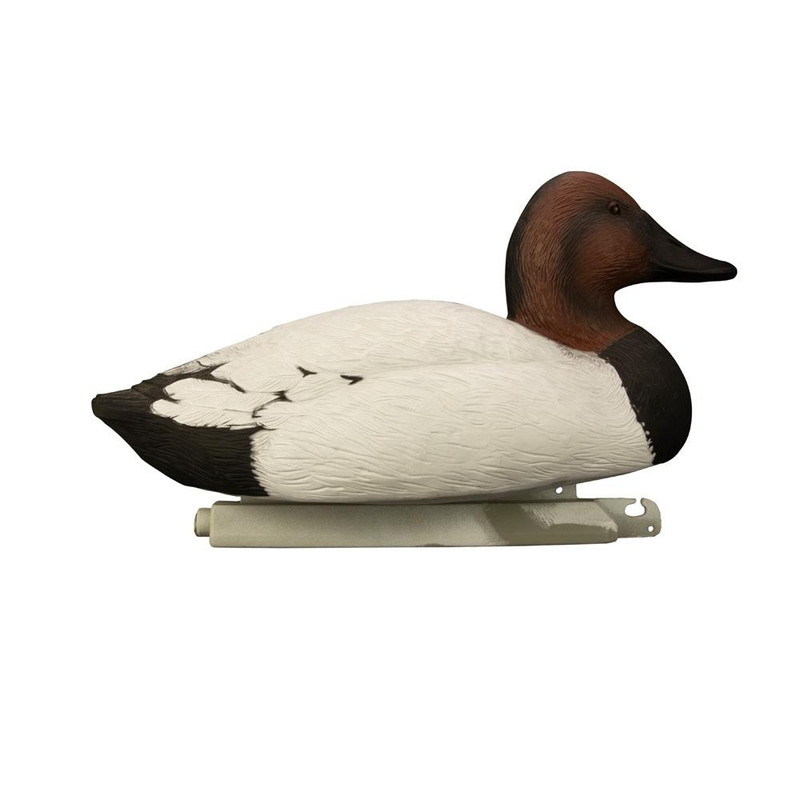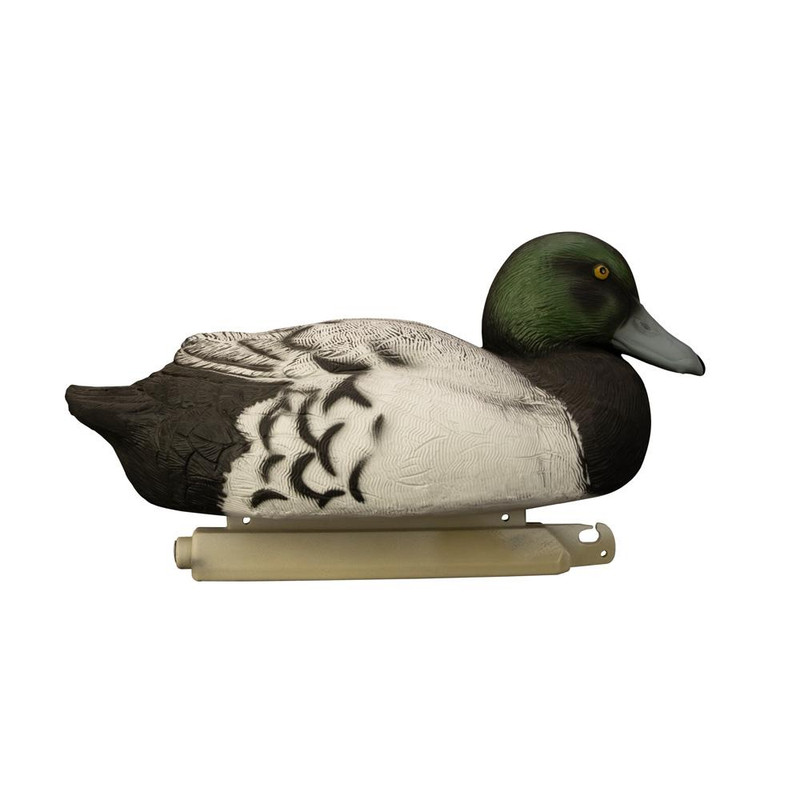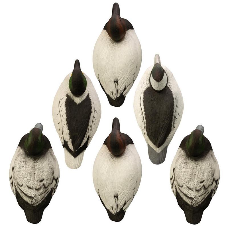 This six-piece all-drake diver decoy package includes 2 Bluebills, 2 Canvasbacks, 1 Bufflehead, and 1 Goldeneye with oversized bodies and high-visibility coloring designed for big water hunting. Features foam-filled construction with durable paint, super-bright whites, contrasting blacks, and realistic feather detail for durability in offshore conditions. The decoys measure 18" W x 14.5" H x 22" L when packaged.