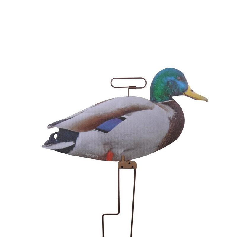 Motion silhouette decoys featuring innovative stake system that rotates up to 145 degrees in light wind. High-resolution printed detail with fade-resistant, glare-resistant finish. Lightweight and portable 12-pack includes motion stake systems and mallard silhouettes.