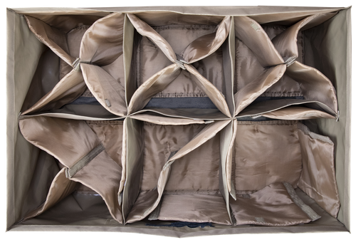 A premium storage and transport bag designed for up to 8 motion duck decoys with a customizable X-Slot Divider System that adjusts from 2 to 8 slots. Constructed from durable 600D poly material with coated mesh bottom for drainage, padded divider panels for protection and buoyancy, and includes deluxe side carry straps with 4 clips for adjustable shoulder configuration.