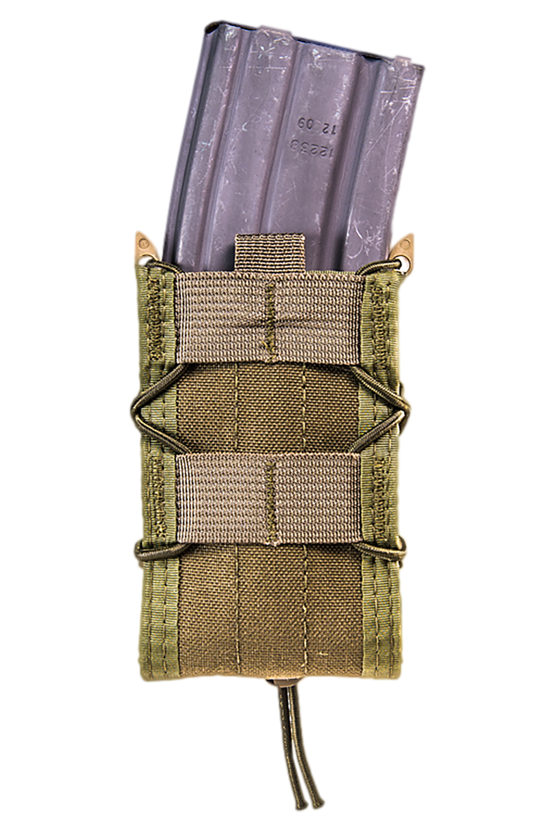The High Speed Gear TACO is a modular tactical mag pouch designed for rifle magazines with MOLLE mount compatibility. Constructed from durable nylon material, it measures 8.7" x 3.4" x 3.3" and securely attaches to any MOLLE-compatible gear. This accessory is optimized for rapid access and efficient magazine organization in tactical or field applications.