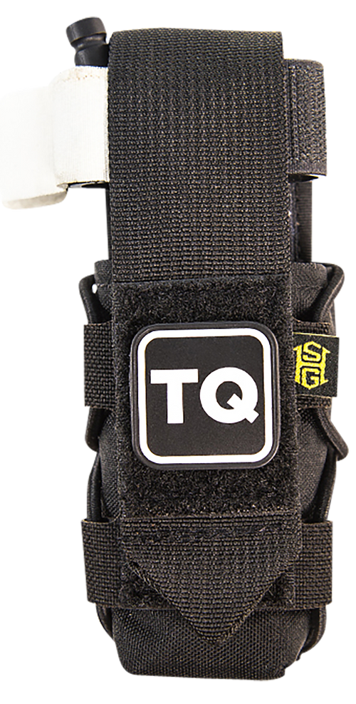 The TACO Tourniquet Pouch is a compact MOLLE-compatible pouch designed to securely store windlass-style tourniquets. Made from durable multi-cam nylon with velcro closure, it measures 10.0" x 3.4" x 2.1" and includes a TQ identification patch. This single-compartment accessory is ideal for quick-access tourniquet storage on tactical gear or medical kits.