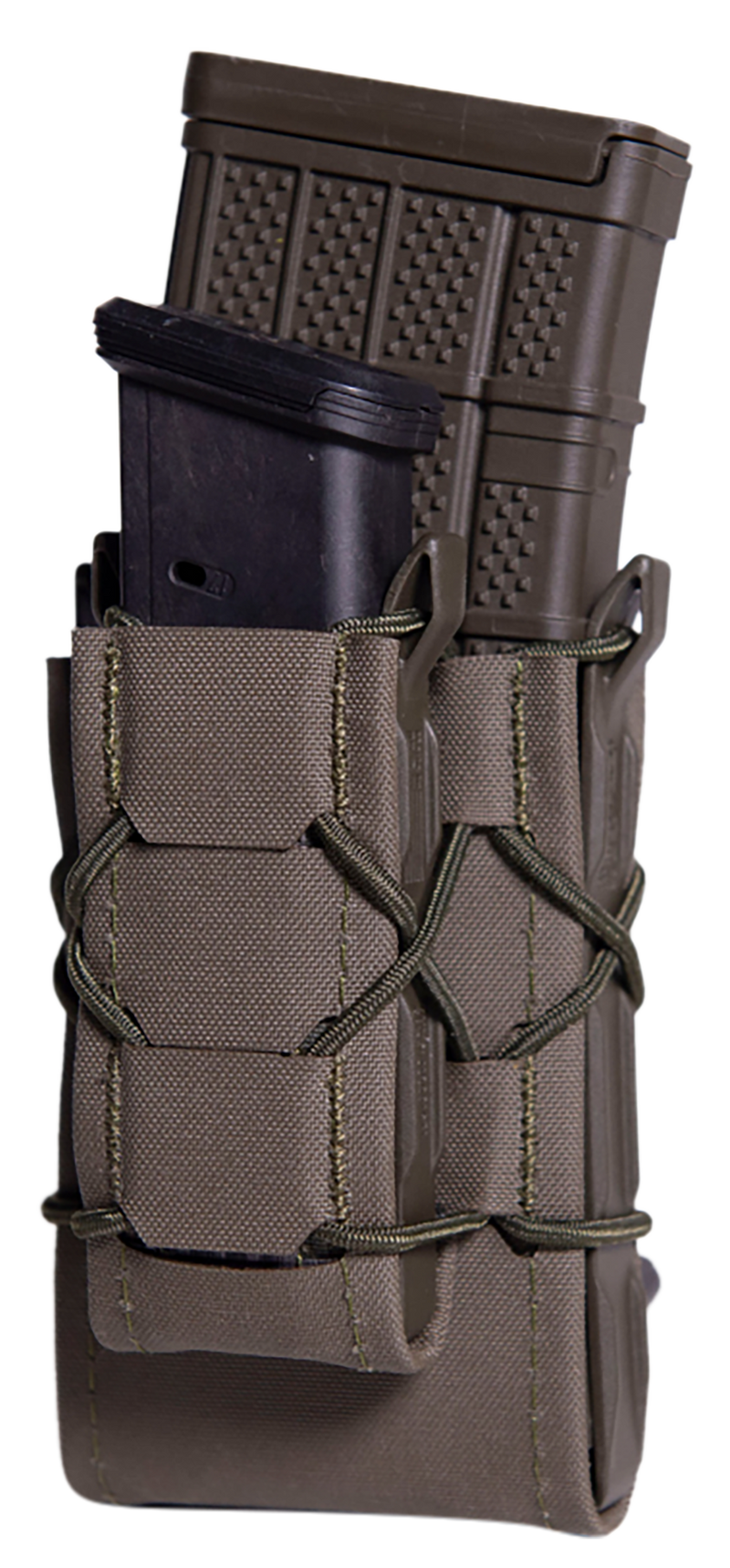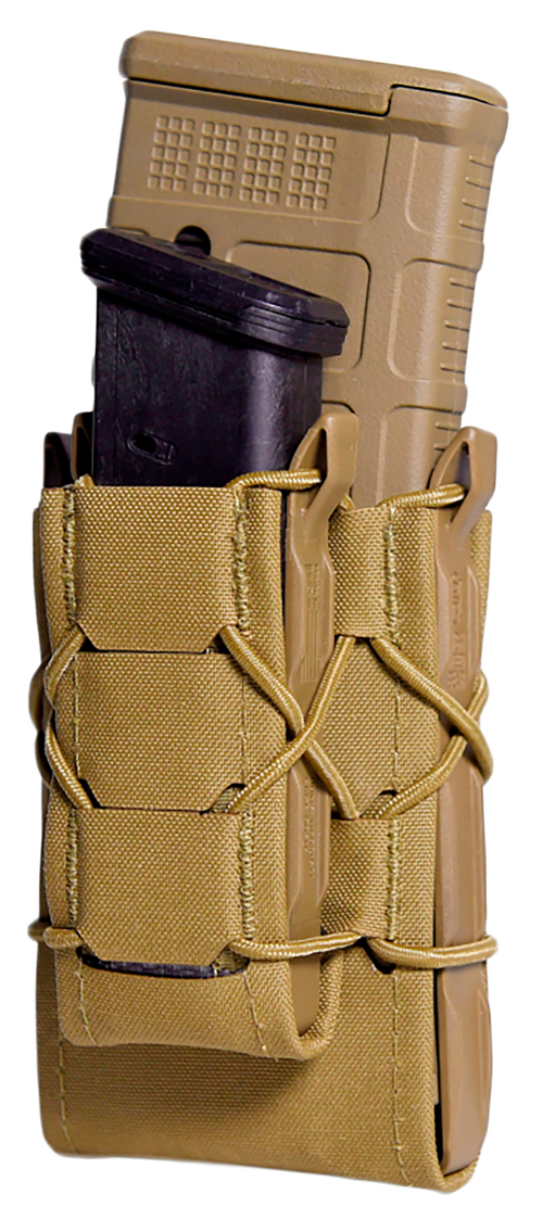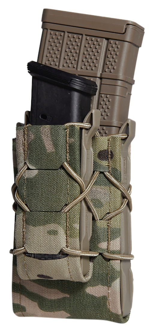 The High Speed Gear TACO Gen 2 Double Decker is a MOLLE-mounted magazine pouch designed to securely hold pistol or rifle magazines. Constructed from durable nylon laminate in OD Green, it features a double-decker configuration (9.3" L x 4.6" W x 2.8" H) for versatile magazine storage on tactical gear or chest rigs.