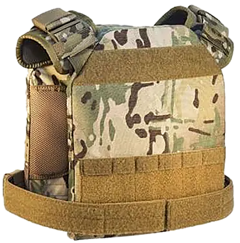 The High Speed Gear Slick Plate Carrier is a Large-sized tactical vest designed to accommodate standard body armor plates. It features a Multi-Cam color pattern and measures 18.8" length by 13.3" width by 3.1" height. This accessory is suitable for professional, tactical, and recreational use where body armor protection is required.