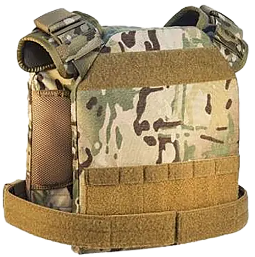 The High Speed Gear Core Plate Carrier is a medium-sized tactical vest designed for body armor plate integration. Constructed from durable nylon with buckle closures, it measures 17.4" L x 13.0" W x 5.4" H. This accessory is suitable for tactical, law enforcement, and outdoor applications requiring protective gear.