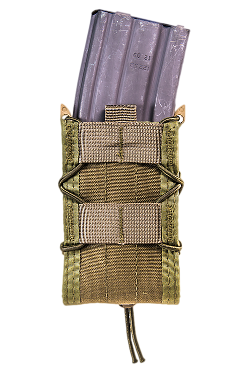 The High Speed Gear TACO Extended Pistol is a nylon MOLLE-mounted magazine pouch designed to securely hold extended pistol magazines. Measuring 8.6" long by 3.2" wide by 2.0" tall, it attaches directly to MOLLE-compatible gear and rigs. The OD Green color integrates with tactical loadouts while the durable nylon construction ensures reliable performance in the field.