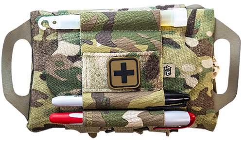 The Reflex Med Roll is a carrying case designed to organize and transport the full contents of an IFAK (Individual First Aid Kit). This modular organizer features High Speed Gear's durable construction to keep medical supplies secure and accessible in the field. The roll format allows for compact storage and quick deployment of first aid equipment.