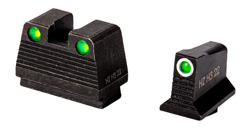 Hi-Viz N2 night sight set featuring tritium-based illumination for low-light shooting conditions. Designed as a complete sight set for firearms requiring replacement sights. Provides reliable visibility in darkness and bright conditions.
