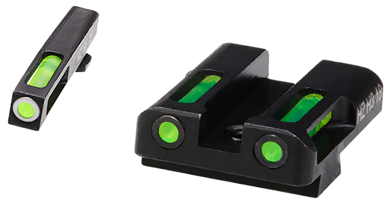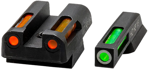 The Hi-Viz LiteWave H3 combines tritium front sight with fiber optic rear sight for 24-hour illumination, providing both day and night sight acquisition. Designed for Glock pistols in 9mm, .40 S&W, and .357 Sig calibers, this all-steel construction sight set features a green tritium front with white outline ring and green fiber optic rear. The LiteWave technology ensures fast target acquisition in low-light conditions while maintaining bright sight picture in daylight.