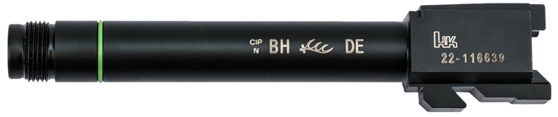 This is a replacement barrel for the H&K USP40 and USP40 Tactical pistols, chambered in .40 S&W with a 4.90-inch length. The barrel features 14.5 x 1 left-hand threading and is constructed of black steel. This barrel is not compatible with USP Compact models.