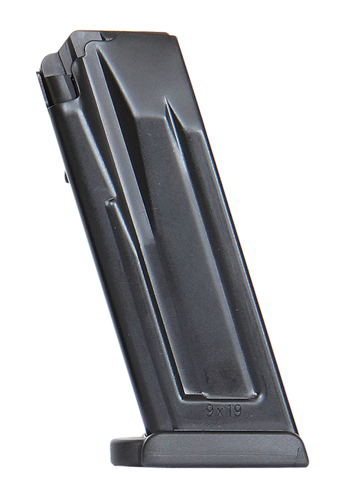 Spare magazine for Heckler & Koch VP9SK and P30SK pistols chambered in 9mm with 10-round capacity. Features an extended floorplate for improved grip and handling.