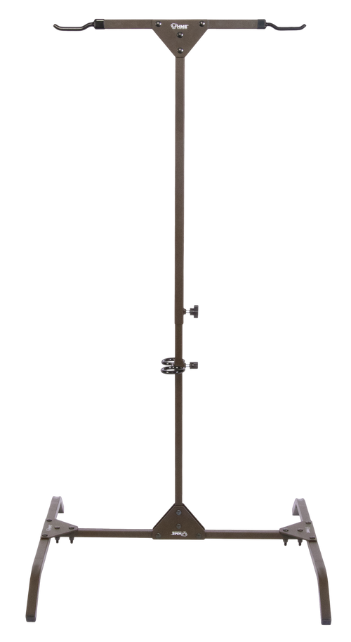 The Better Bow Hanger is a screw-in style bow hanger designed for secure bow storage in treestands. It features three mounting screws for installation at multiple treestand locations and a single wing nut removal system that allows quick removal and relocation between stands. This design effectively provides the functionality of three separate hangers in one product.