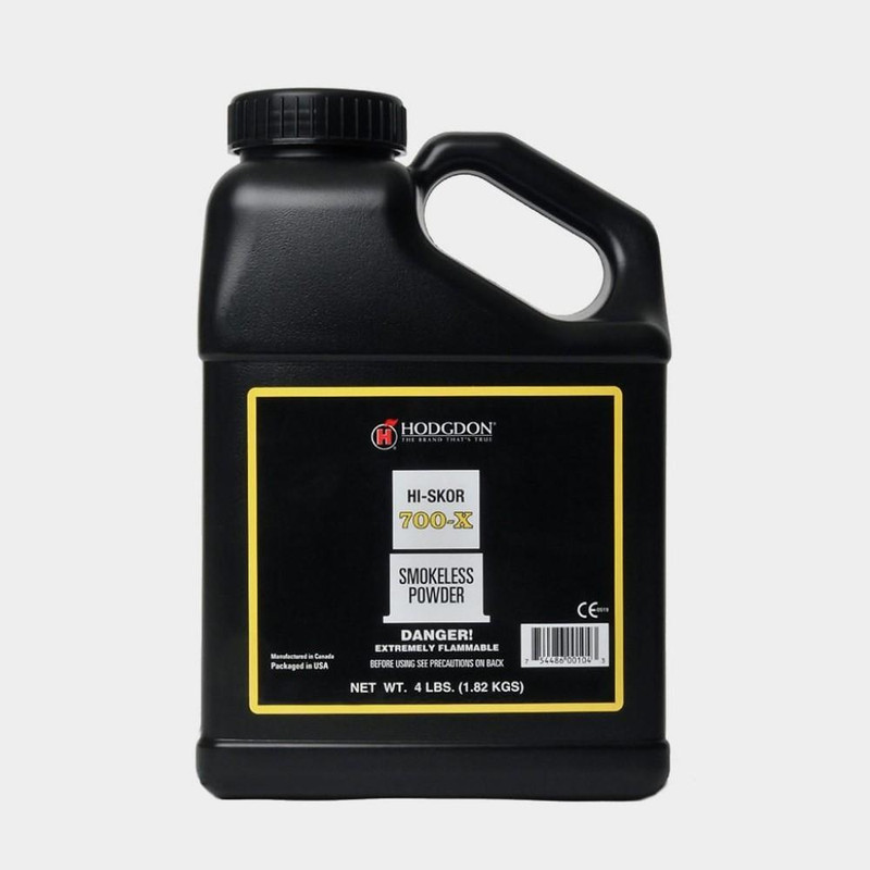 Hodgdon 700X is an extruded flake powder designed for shotshell loads in 12- and 16-gauge shotguns for clay target and light field shooting. It also performs well as a pistol target powder for cartridges like .38 Special and .45 ACP. This product is available in a 4 lb. container.