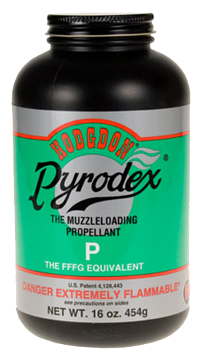 Hodgdon Pyrodex P is a black powder substitute designed for muzzleloading rifles, pistols, and ball and cap revolvers. This powder burns cleaner than traditional black powder and produces less fouling. It is measured volumetrically using a black powder measure and replaces FFFg black powder.