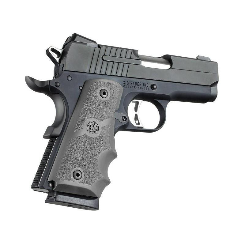 Hogue 1911 Officer Rubber Handgun Grips with Finger Grooves, Slate Grey - 43002