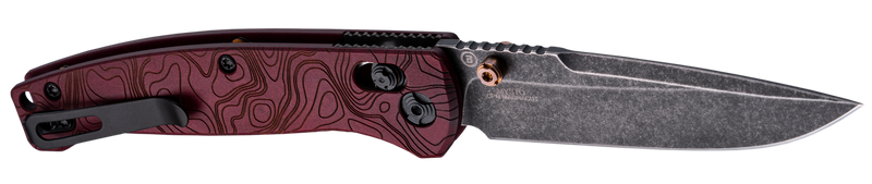 The Hogue Mysto is a 3.4" folding knife featuring a CPM MagnaCut steel blade with a stonewashed finish and drop point or clip point design. The knife includes a redstone Richlite handle, ABLE lock mechanism, titanium backspacer/thumbstud, and thumb stud opening. Overall length is 7.8" when open, weighing 2.5 oz.