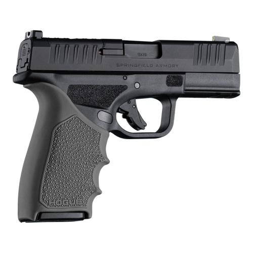 Precision-fit rubber grip sleeve designed specifically for the Springfield Armory Hellcat Pro handgun. Features Hogue's Cobblestone texture pattern for enhanced grip and comfort, with gentle palm swells and finger grooves for optimal hand positioning. The beaver tail design cushions recoil and provides increased hand comfort during shooting.