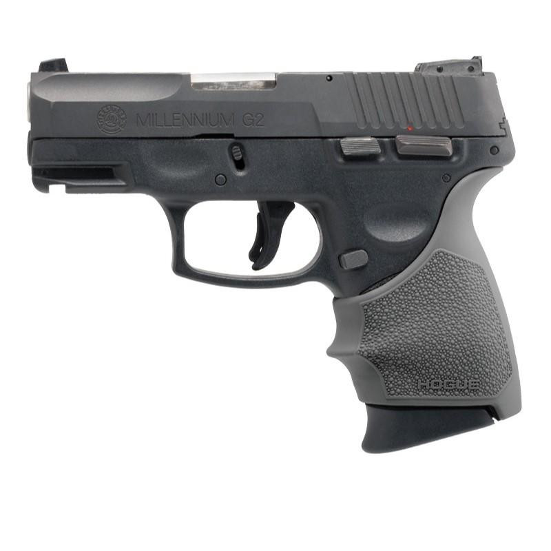 Hogue HandAll Beavertail grip sleeve designed specifically for Taurus G2 handguns in slate grey color. This polymer grip sleeve provides enhanced ergonomics with a beavertail design to reduce hand bite and improve control. Slip-on installation requires no modifications to the firearm.