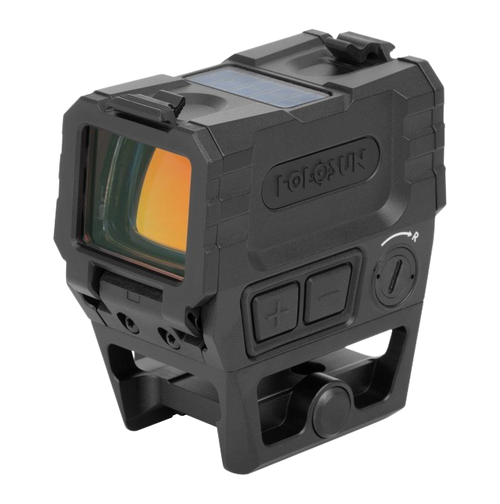 The Holosun AEMS Core X2 is a 1x fixed magnification enclosed reflex sight with a 2 MOA gold dot reticle. It features a 1913 Picatinny rail mount with lower 1/3 co-witness capability and multi-coated optics for clear sight picture. This compact design is ideal for rifles requiring a lightweight, durable aiming solution.