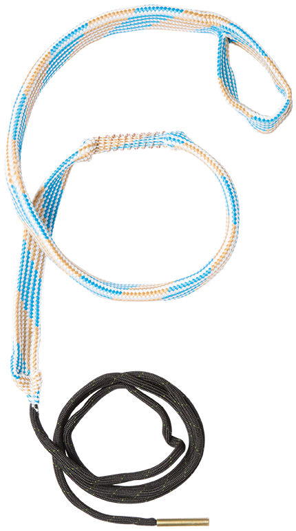 The Hoppe's BoreSnake is a compact bore cleaning rope featuring an integrated bronze brush that loosens large particles and scrubs out carbon fouling in a single pass. The product includes a Snake Den storage case with built-in handle for convenient transport and protection during storage. This one-pass cleaning system is designed for 9mm rifles and includes a brass-weighted pull cord for ease of use.