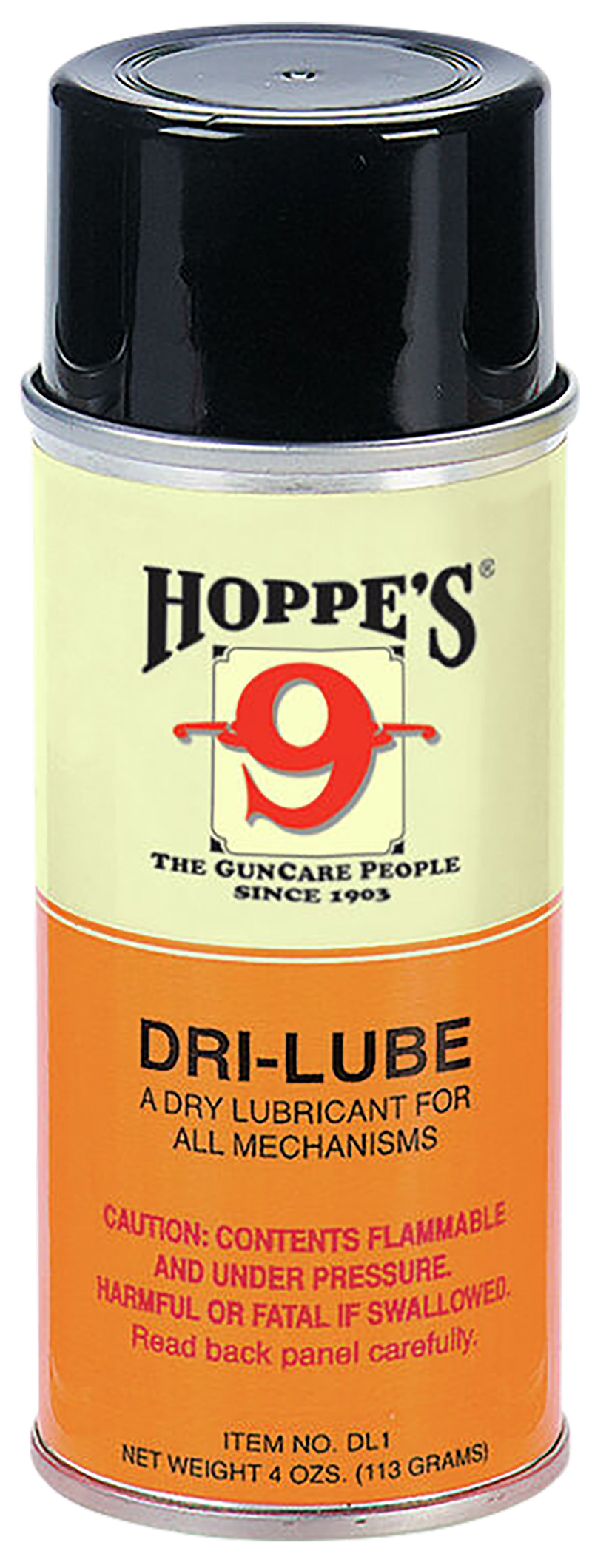 Hoppe's DL1 No. 9 Dri-Lube is a dry lubricant aerosol designed for cleaning and maintaining firearms. Formulated with Teflon to reduce friction on metal and bearing surfaces without attracting dust or dirt, and contains no sticky oils or silicones. Available in a 10-pack of 4 oz aerosol cans.