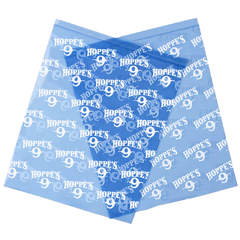 Hoppe's Air Vault is a plastic storage bag designed for handgun protection during long-term storage. It incorporates VCI (Vapor Corrosion Inhibitor) technology woven throughout the interior to create a molecular barrier against moisture, salt, and other corrosive contaminants. Dimensions are 9" x 12" with a low-profile design for compact storage.