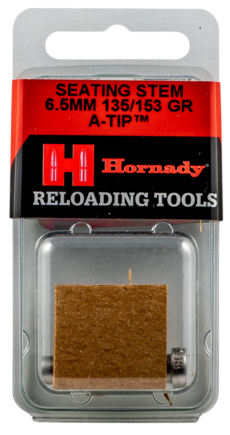 This seating stem is designed specifically for Hornady Custom Grade Dies and machined to fit the profile of A-Tip Match bullets, allowing precise seating without damaging bullets. Compatible with 6.5mm (.264") bullets in 135 grain and 153 grain weights. Not compatible with other manufacturers' dies.