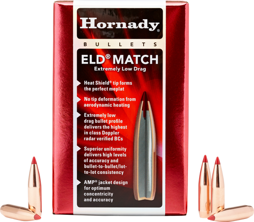 Hornady A-Tip Match bullets are precision rifle bullets designed for target and match shooting applications. These 135 grain .264 diameter bullets feature a ballistic coefficient of .637 (G1) and .321 (G7), with a sectional density of .277. Recommended for 1:8.5" minimum twist rate rifles, sold in boxes of 500 rounds.