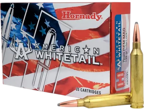 Hornady American Whitetail 7mm Rem Mag 154gr InterLock Spire Point Rifle Ammunition, 20rd Box - 80590