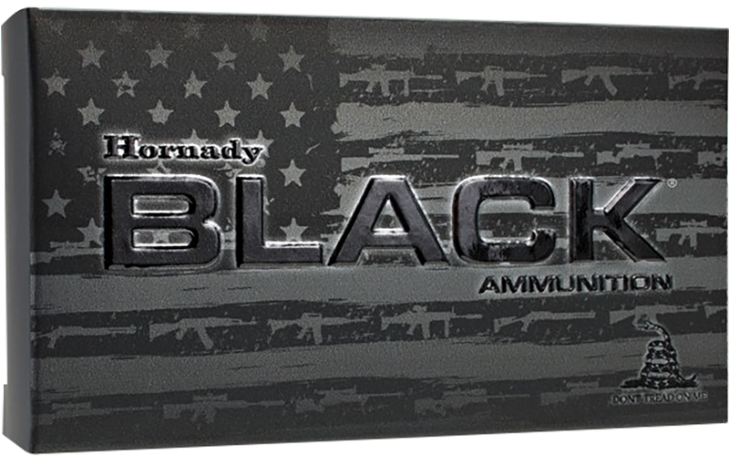 Hornady Black 4.6x30mm H&K ammunition loaded with 38 grain V-Max bullets at 2100 fps muzzle velocity, delivering 372 ft-lbs of energy. Features high-quality brass cases with Boxer primers and is suitable for suppressed and unsuppressed applications. Each box contains 25 rounds with 10 boxes per case.
