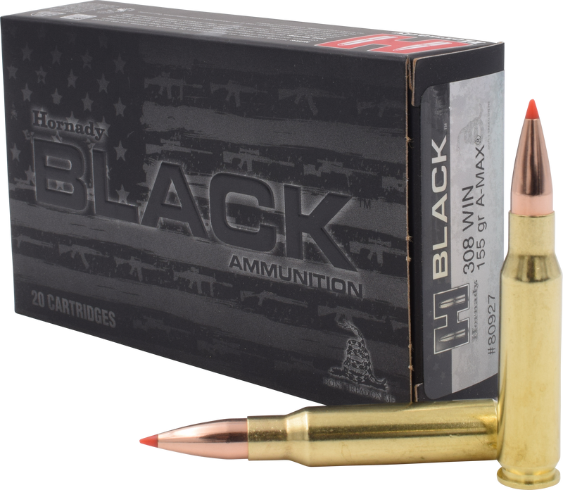 Hornady Black 308 Win 155gr A-Max Rifle Ammunition, 20rd Box - 80927