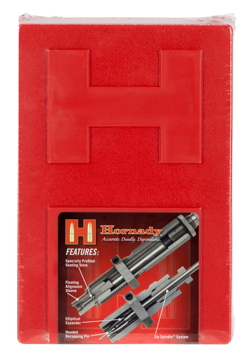 This two-die reloading set from Hornady includes a full-length sizing die and bullet seater die designed specifically for the 300 PRC cartridge. The dies feature Hornady's Zip Spindle Design for positive locking and incremental adjustments, and are guaranteed never to break or wear out from normal use. Ideal for precision rifle reloaders seeking consistent, high-quality ammunition production.