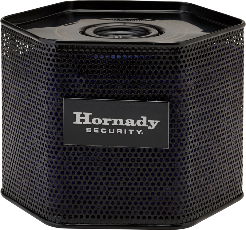 Reusable desiccant canister that protects firearms and valuables from rust and corrosion by controlling moisture in safes and storage areas. Desiccant crystals change color from blue to pink when saturated, indicating when recharging is needed. Recharge by placing in a 300°F oven for up to 4 hours; unlimited recharges with no batteries required.