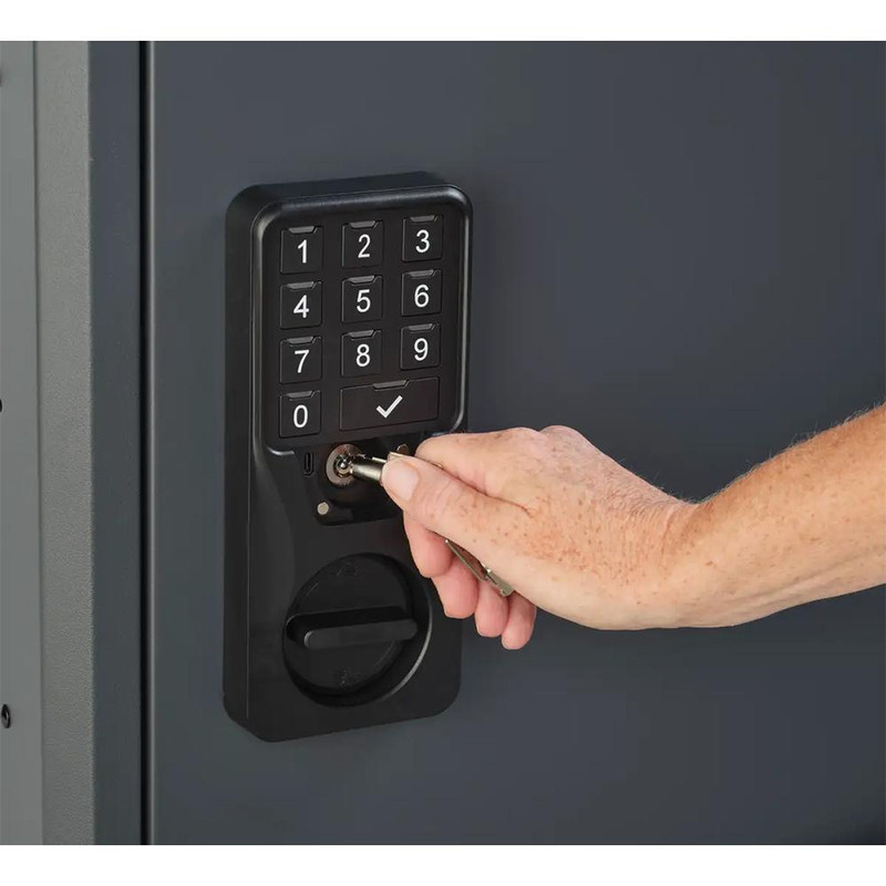 Heavy-duty steel ammo storage cabinet with a three-point locking system and 10-digit digital keypad for secure access. Features an integrated USB backup power port to prevent lockouts. Designed to safely store ammunition and valuable gear.