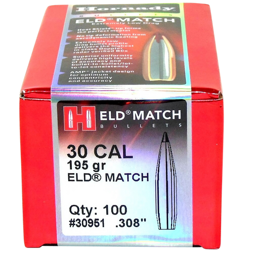 Hornady ELD Match bullets are precision reloading projectiles designed for target shooting and match applications in .25 caliber (.257 inch diameter). These 134 grain bullets feature Heat Shield tips and are engineered for extremely low drag and superior ballistic coefficients, delivering exceptional accuracy and consistency. Sold in boxes of 100 rounds.
