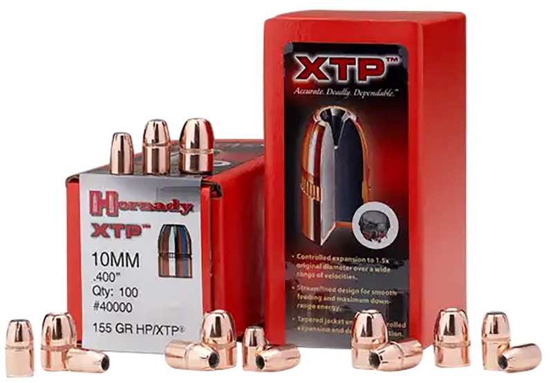 Hornady XTP bullets are .357 diameter, 125 grain jacketed hollow point projectiles designed for handgun reloading in 38 caliber and similar applications. These bullets feature a copper jacket with lead core and are engineered for reliable expansion across a wide range of handgun velocities. Each box contains 100 bullets and is suitable for hunting, self-defense, target shooting, and law enforcement applications.