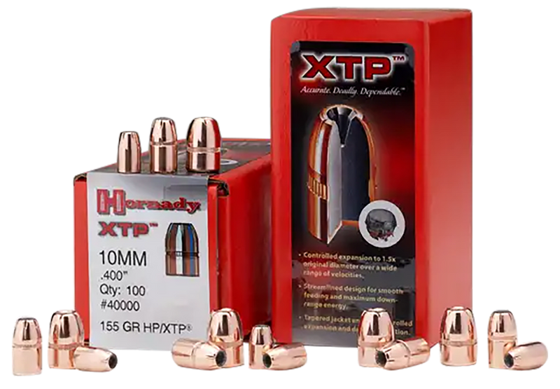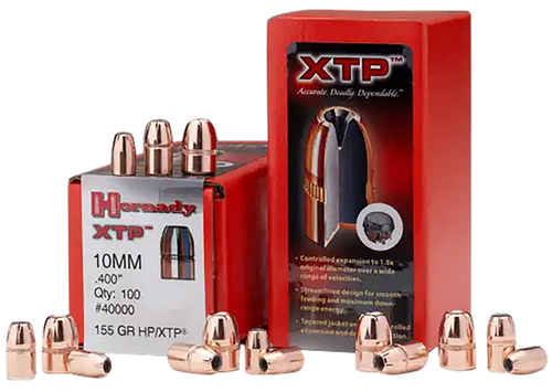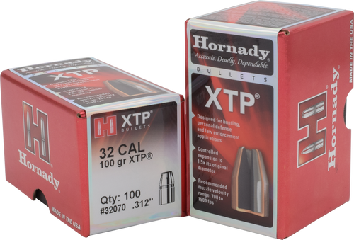 Hornady XTP hollow point bullets designed for .38 caliber handguns with a .357" diameter and 140 grain weight. These jacketed lead bullets are engineered for reliable expansion across a wide range of handgun velocities and are suitable for hunting, self-defense, and target shooting applications. Each box contains 100 bullets.