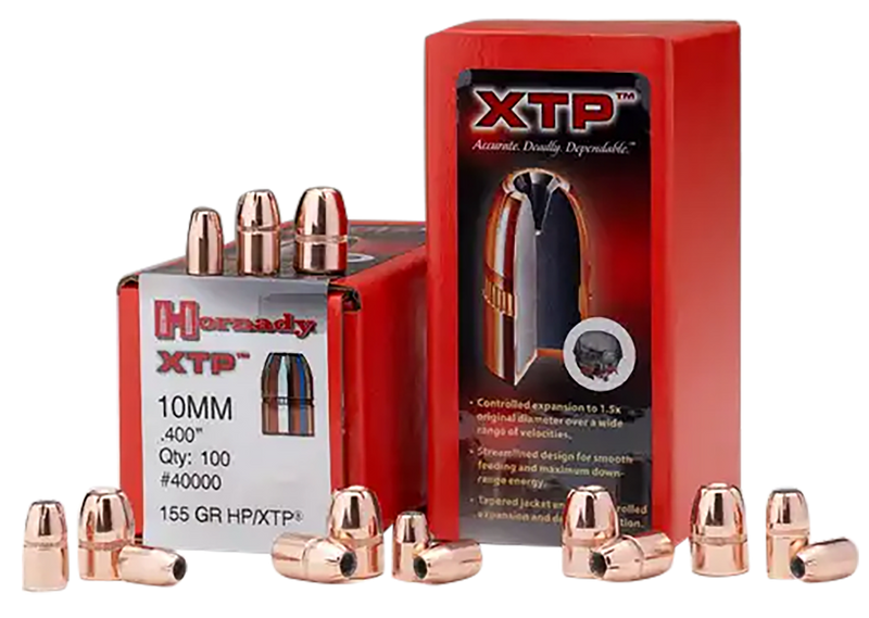 Hornady XTP bullets are jacketed lead hollow points designed for .357 Magnum and .38 caliber handgun reloading. These 158-grain bullets are engineered for reliable expansion across a wide velocity range, making them suitable for hunting, self-defense, and target shooting applications. Each box contains 100 rounds.