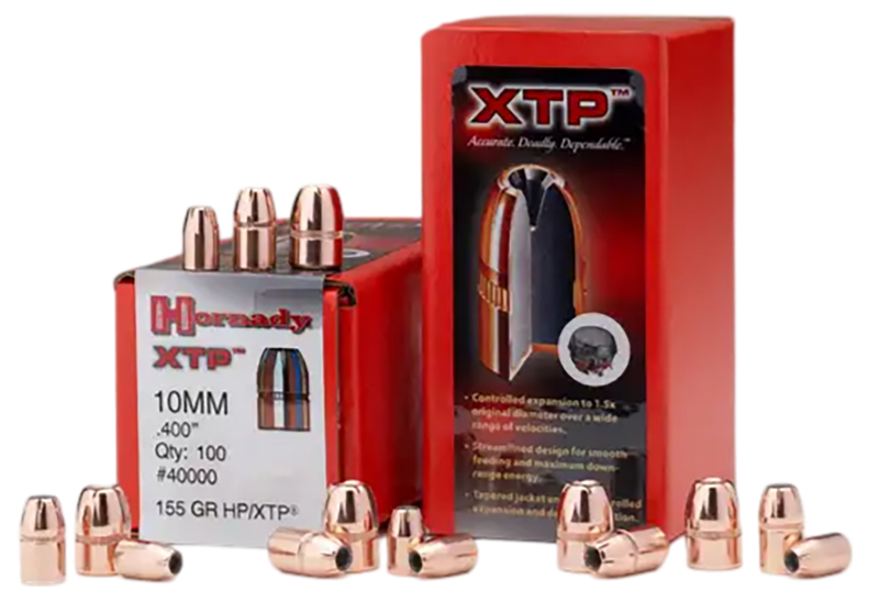 Hornady XTP bullets are jacketed lead hollow points designed for handgun reloading in .45 caliber (.451" diameter) at 185 grains per bullet. These bullets are engineered for hunting, self-defense, and competitive shooting applications, featuring reliable expansion across a wide range of handgun velocities. Each box contains 100 bullets with 15 boxes per case.